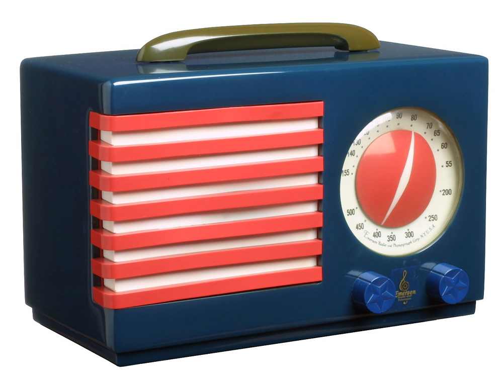 The decorative appearance of radios could also be enhanced through trim, so tuning knobs, dial parts and handles were often cast separately in a contrasting colour. The Patriot shows this brilliantly with its dial and speaker grills picked out in white and red, and the tuning knobs a different shade of blue. This design was produced in varying combinations paying homage to the American flag.
