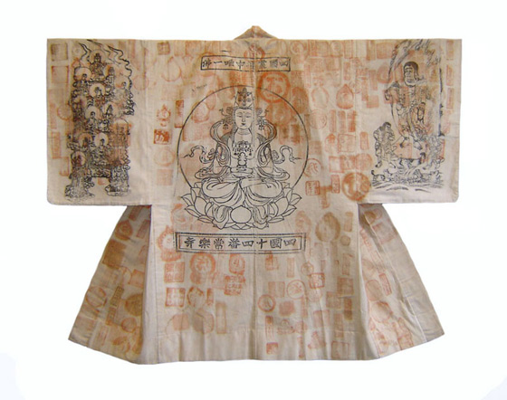 While most modern-day pilgrims (an estimated 100,000 yearly) travel by tour bus, often only to specific temples, a small but significant minority of Japanese and non-Japanese still set out the old fashioned way on foot, a journey which takes about six weeks to complete. These pilgrims, known in Japanese as 'o-henro-sama' can be seen at the temples and along the roadsides of Shikoku clad in a white jacket bearing the characters 'Dogyo Futari' (meaning 'two travelling together'), the companion here being the spirit of Kobo Daishi.