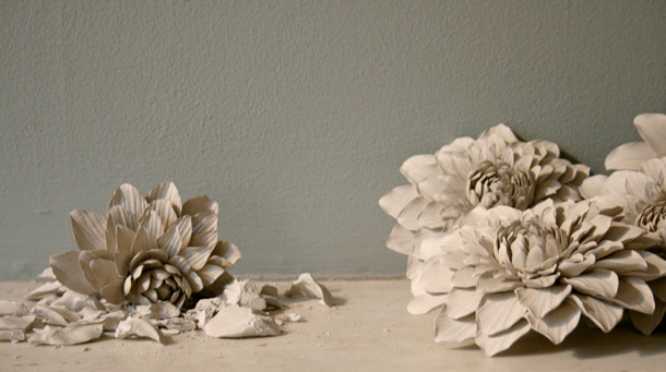 At the Royal Academy she worked with traditional flower makers in Stoke on Trent to make hundreds of exotic flowers in a work titled Specimen, which interrogated the protection and destruction of objects. The flowers were not fired and exposed to the touch of visitors throughout the exhibition. Their vulnerability reflected on the disappearance of traditional craft skills in Stoke on Trent.
