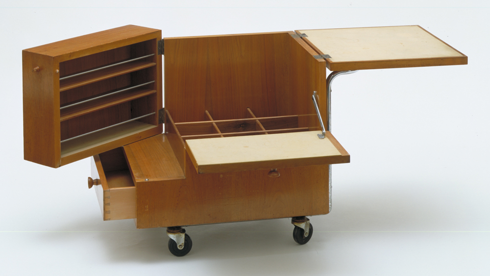 The living room she designed for the Schreibers comprised of a divan, chairs, this trolley and a number of fitted units. In keeping with modernist principles what was not built-in was easily moved so the room was open and flexible.