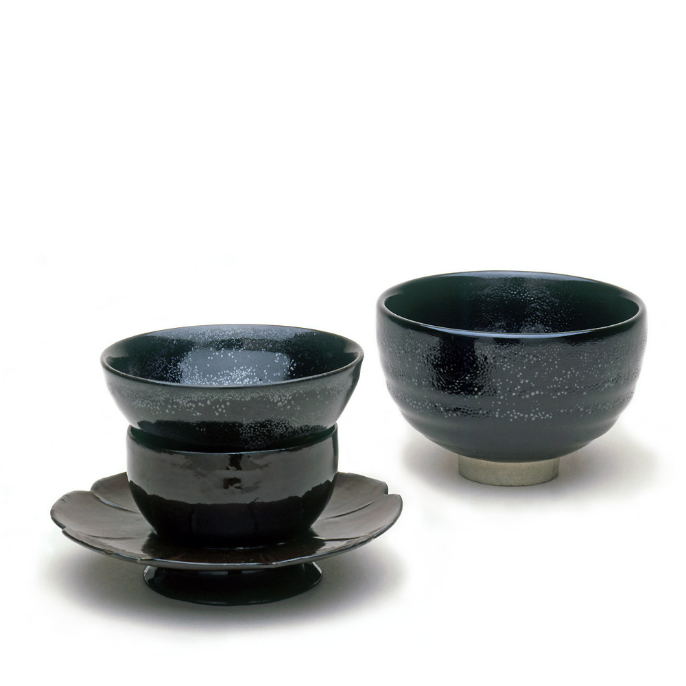 The thick sides of stoneware bowls mean the heat of the tea is not lost quickly and the tea- drinker's fingers do not get scalded. Stands were used for serving or to raise steaming tea bowls to the lips.