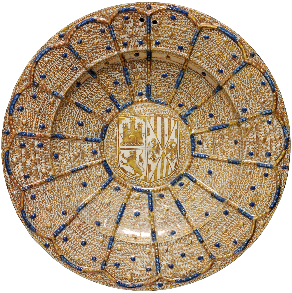 This technique was widely practised throughout the Islamic world and was being made at Málaga, Spain by the 12th century. A competitive industry was established at Manises, a suburb of Valencia, one of the main western Mediterranean ports where Italian merchants had trading posts. Surviving Italian documents, especially from Florence, detail the huge number of imports via this trade network. These were described as maiolica, a term which only later became applied to the locally-made Italian wares. Many were decorated with the coats of arms of their Italian patrons, which helps date them.