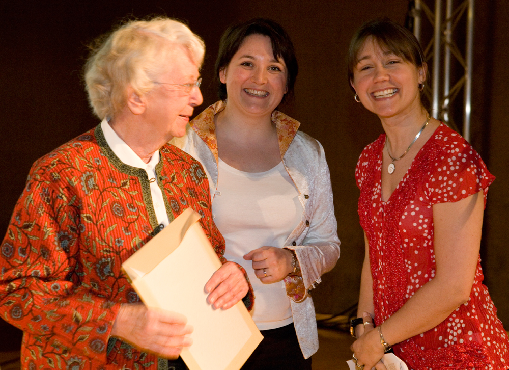 Sandra Haddock receiving the Museum of Childhood prize from Museum of childhood curator, Catherine Howell