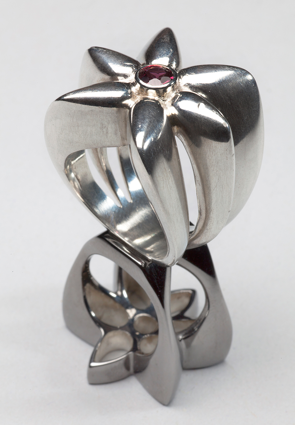 ‘I absolutely love David Ward’s Jali rings because his inspiration from the V&A’s Asian collections is so clear and so successful; he has recreated the effect of light passing through the geometric shapes of an Islamic Middle Eastern screen in a startlingly beautiful piece of jewellery. I also admire the originality of his presentation, the two rings acting as a top and a base to create a stunning sculptural ornament.’