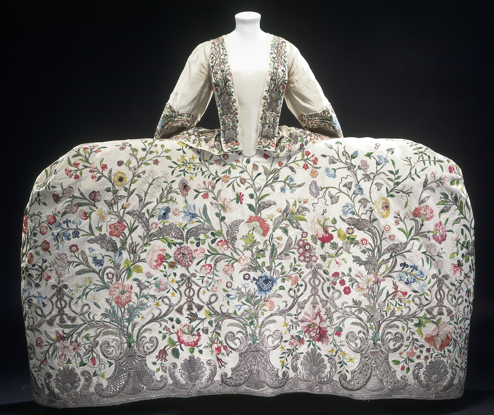 'If found my inspiration in the British galleries among the display of sumptuous finery. The Mantua court dress in particularly caught my attention, mainly for its incredibly impractical shape which exaggerates the hips using a square cage.'