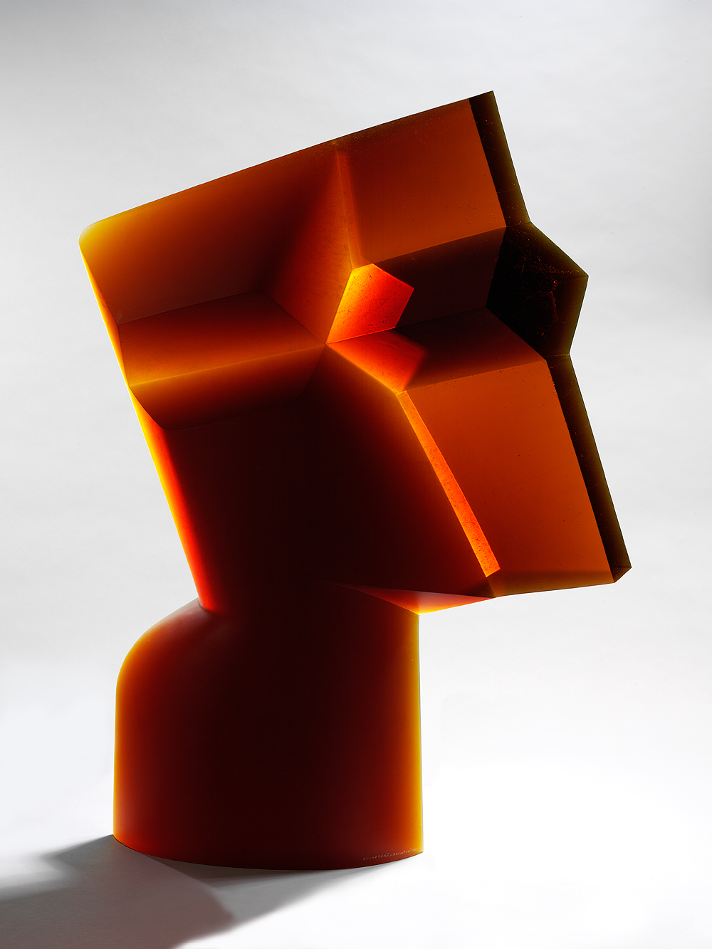 'The pleats in the 'Honey-Pop' chair inspired me to explore how I too could work with paper. I discovered that by crumpling and pleating the paper, I could make 3D models around which I could build a refractory mould to cast glass. By using the burn-out techniques, I was able to retain the delicacy and detail of the pleated paper that had first inspired me.'