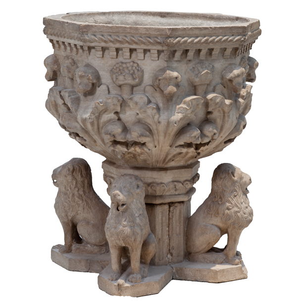 Piping water through sculpted animals, especially lions, was an ancient Roman tradition enthusiastically adopted in Renaissance Italy. This example of a fountain basin, said to have come from the courtyard of a house in Padua, has four such beasts, their mouths drilled to allow a playful flow of water.