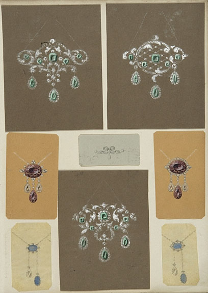 The jewellery archives offer an interesting overview of changes in taste and style across some two hundred years of the design, manufacture and retail of jewellery. The archive for Garrard & Co. Ltd, who became crown jewellers in 1843, includes Gentlemen's ledgers containing indexes of goods and some client accounts covering the period 1735 to 1949. There is also a collection of hand-drawn jewellery designs by William Snelling Hadaway as well as his privately printed essay on opals dating from 1907.