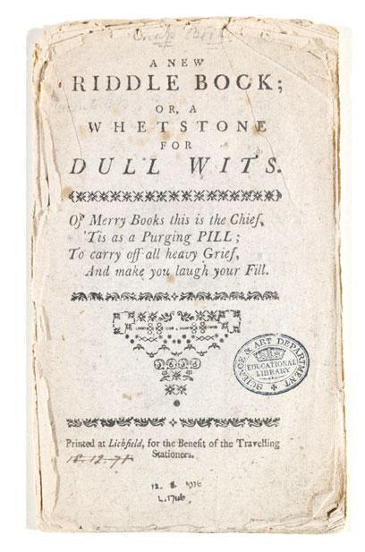 !['A new riddle book, or, a whetstone for dull wits', Lichfield, [ca 1790]. NAL Pressmark: 60.Z.155](http://www.vam.ac.uk/__data/assets/image/0011/228485/40308-large_custom_base_custom_base_custom_base_custom_290x466_2539113602.jpg)