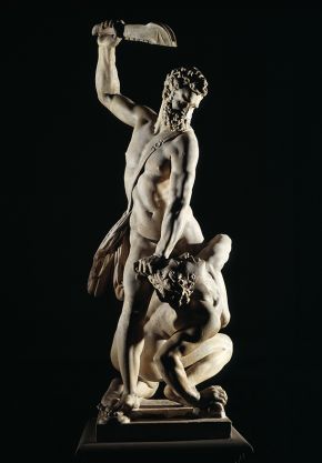 Standing just over two metres high, this imposing marble sculpture depicts two naked men locked in combat. The motif of the piece, 'Samson Slaying a Philistine', is taken from an episode described in the Bible, in the Old Testament's Book of Judges: 'And he (Samson) found a new jawbone of an ass, and put his hand and took it and slew a thousand men therewith'. Carved in Florence, probably between 1560 and 1562, it was the work of an artist known by the name of Giambologna. 'Giambologna' was a contraction of 'Giovanni of Bologna', a title that came from the artist's actual name: Jean Boulogne. Giambologna had come from Flanders to Italy in around 1550 to study the masterpieces of classical and Renaissance sculpture. On his homeward journey he was persuaded to stay in Florence by the Medici family, the dynasty that controlled the Republic of Florence, and by the middle of the 1560s he was firmly established as a court sculptor.