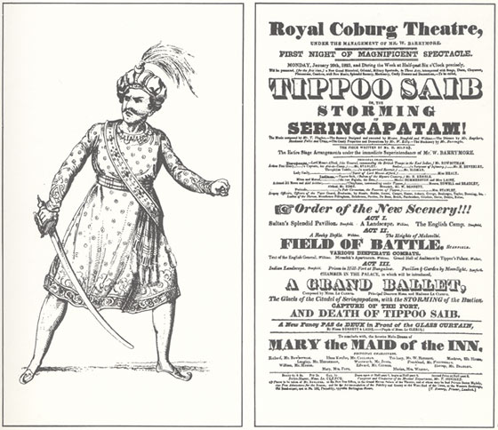 Tipu also inspired various dramatic productions like this one at the Royal Coburg theatre in 1823 with no less than Henry Campbell treading the boards as the defiant Sultan.