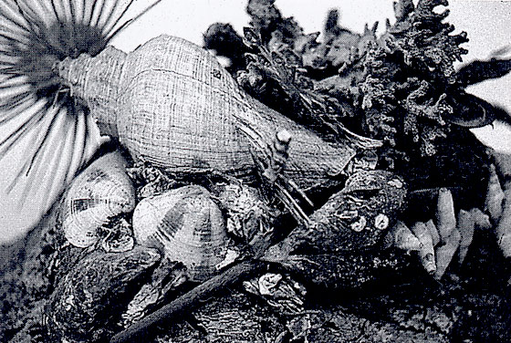Fig. 2. Detail showing a variety of marine elements and the broken end of the fish bone (click image for larger version)