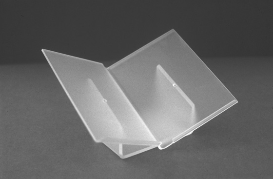 Figure 1. Satin finish acrylic book cradle. Photography by Bridget Mitchell (click image for larger version)
