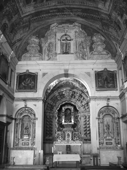 The fourth church was situated in the centre of Lisbon. Conservators were just finishing cleaning the paintings on the ceiling, and were about to remove the extensive scaffolding that had been hiding the work. This was a particularly interesting project as the ceiling paintings had been so discoloured (almost black) that no one living could remember what they looked like. Figueira and his crew were obviously excited at the prospect of unveiling the paintings for the first time.