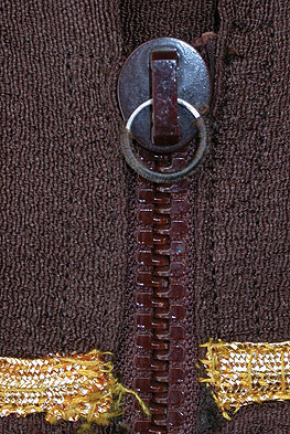 Figure 3. T.36-1964 ‘Etruscan’ dress by Elsa Schiaparelli, 1935/6, cellulose nitrate zip Photography by Elizabeth-Anne Haldane (click image for larger version)
