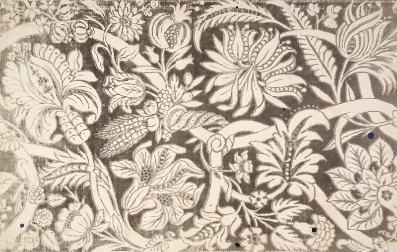 (27) Woven textiles, tapestries and embroideries were well represented, though it appears that the collections included few printed textiles until the acquisition of the Forrer collection in 1899. Morris, Barbara. ‘William Morris and the South Kensington Museum’. Victorian Poetry 13.3-4(1975): 167.