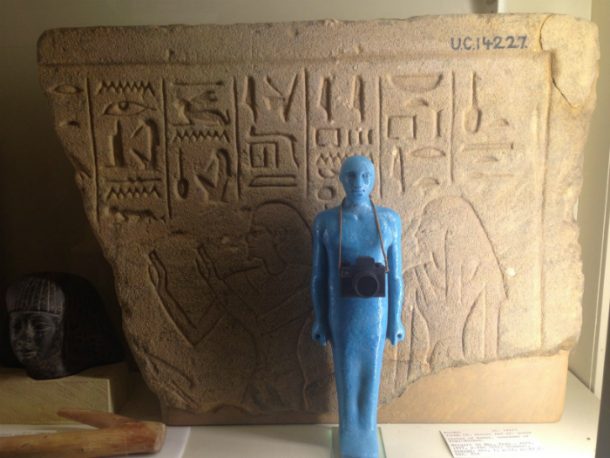 ‘Nu’ Shabti intervention at the Petrie Museum of Egyptian Archaeology, October 2014 – this figure is now in the V&A collection (ME.21-2015) (photo: Mariam Rosser-Owen)
