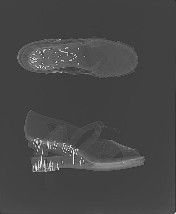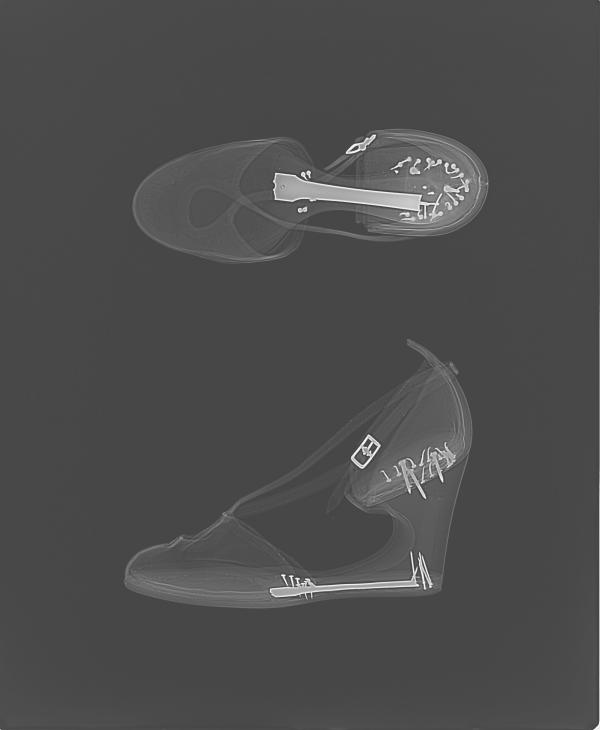Part of a Conservator’s job is to identify the materials used to create objects. One way of ‘seeing the unseen’ is by using X-radiography, which can reveal some interesting things about an object. X-rays can help to identify the construction, manufacturing techniques and materials of an object, which in turn helps to inform us about what the best course of treatment might be for that object. Although we use X-radiography to examine everything from Old Master Paintings to childrens’ teddy bears, for the fashion collection at the V&A, shoes can be particularly interesting to look at.