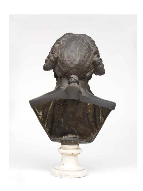 Perronet had been Engineer to the King for over twenty years by the time his friend Pigalle made the bust. A lengthy and touching inscription on the back of the bust specifies that Perronet was aged 76 and ‘his friend’ Pigalle was 71 when the portrait was carried out. The bust was shown in the Salon of 1785 and was to be Pigalle’s last work.