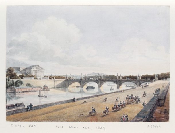 Perronet’s most well-known work should be familiar to visitors to Paris. It is the Pont Louis XVI (later renamed Pont de la Concorde), the arch bridge which stretches across the Seine, connecting the Quai des Tuileries (Right Bank) and the Quai d’Orsay (Left Bank).