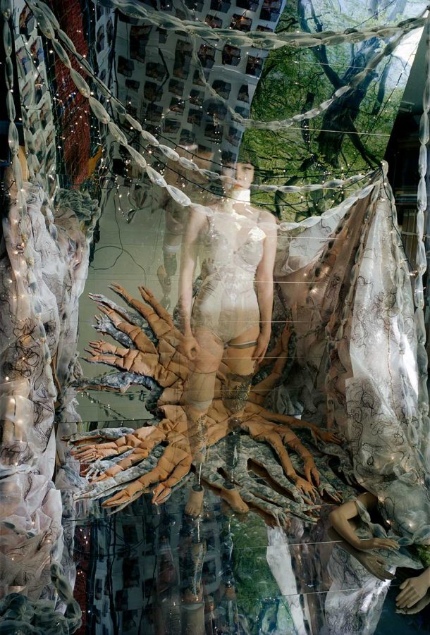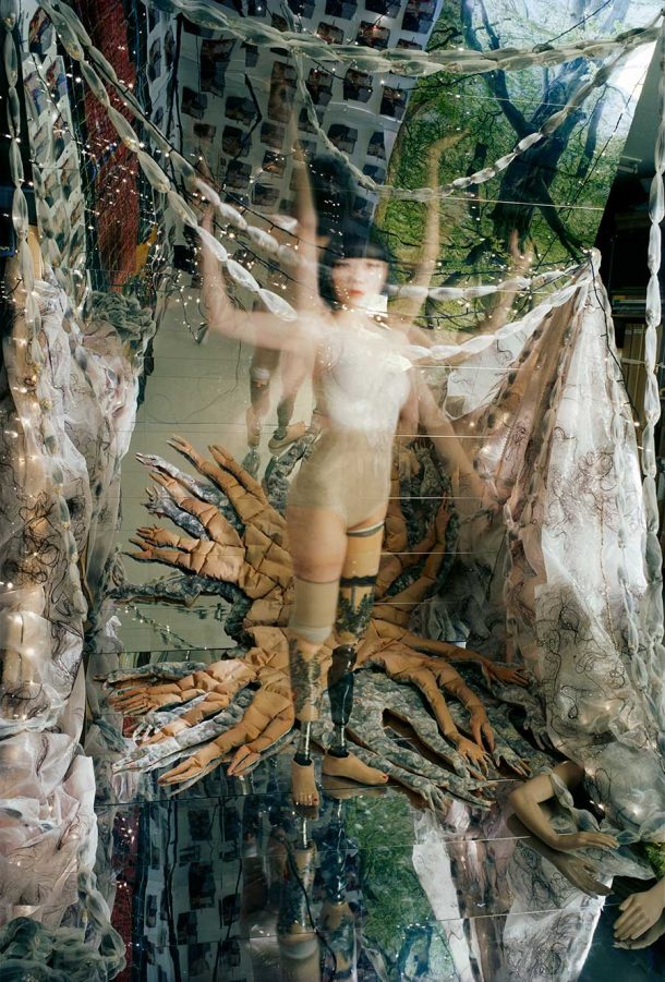 Mari Katayama is a multidisciplinary artist based in Gunma, Japan. Born in 1987 in Saitama, she graduated with a Master’s degree from the Department of Intermedia Art at Tokyo University of the Arts in 2012. Katayama’s artistic practice begins with intricately hand-sewn fabric objects which feature in her photography, video, and activist art projects. She uses her body as a living sculpture, a mannequin and a lens through which to reflect society and our environment.