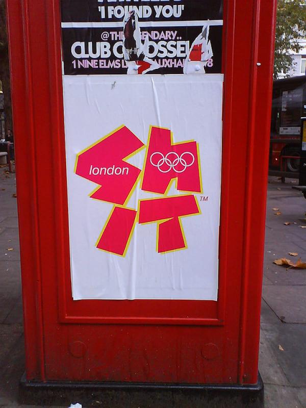 In collecting graphics from London 2012, we are looking across the full spectrum of officially approved, ad hoc and oppositional designs. This goes for both printed objects and our Collect London 2012 Flickr project which aims to build up an archive of photographs of Olympic graphics in-situ in order to capture and preserve something of the graphic environment of the Games. Have a look at the great range of photographs that have been submitted so far – and keep adding to it.