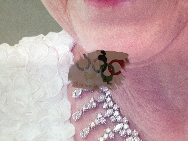 A sticker strategically placed over an image of the Queen on a poster promoting the ‘Diamonds’ exhibition at the Royal Collecion. Photograph by Catherine Flood
