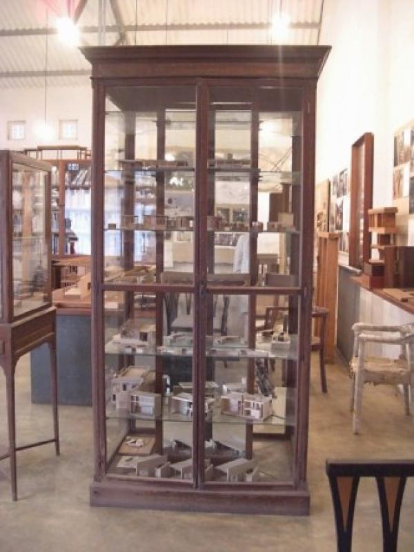 Karen was very helpful in offering advice and support during the early stages of the exhibition’s development – and was invaluable in arranging those all-important site visits! Just before Karen left the project (and the country!) she had the opportunity to meet the Studio Mumbai team when they came to the UK for their presentations. Business cards were exchanged, and Karen duly followed up on her promise to visit the Studio Mumbai workshop when she passed through a few weeks ago. Having spent so many months in dialogue with Bijoy, Michael and the rest of the Studio Mumbai team, it’s fantastic to get a glimpse of what their own workspace looks like. I especially love the vintage display case with all the architectural models (see below). Karen also went on a walk through the serpentine corridor of dwelling space which Bijoy and team are using as inspiration for their ‘1:1’ commission (see image above, and bottom). It’s great to be able to take a virtual walk through these narrow spaces, and to imagine how this will translate to the exhibition experience in the V&A Cast Courts next June. Thanks for the photos, Karen!