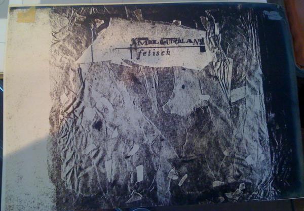 Back in the 1980s, Oliver’s key mechanical tool was the PMT (Photo Mechanical Transfer) camera – a vertically mounted large format machine that produced a distinctive type of print, with a lovely tactile surface and seemingly endless visual depth. He was particularly interested in the ‘underexposed’ areas at the edge of the print, which had an atmosphere he liked. Here is the PMT print he used for the Fetisch sleeve shown above – a photo of ripped-up, taped-together Japanese rag paper he composed for the shot.