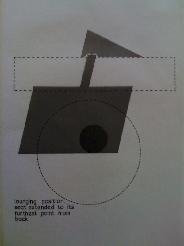 Dillon has just given the Archive of Art and Design at the V&A some precious archival materials, including the pictures I’ve included in this blog post, and also some of the preparatory sketches for the chairs. Here are one of the earliest development drawings – with a tentative title of ‘T-Time,’ a reference to the idea of including an integral table in the design – and a geometric study showing the plan of the chair (as if viewed from above).
