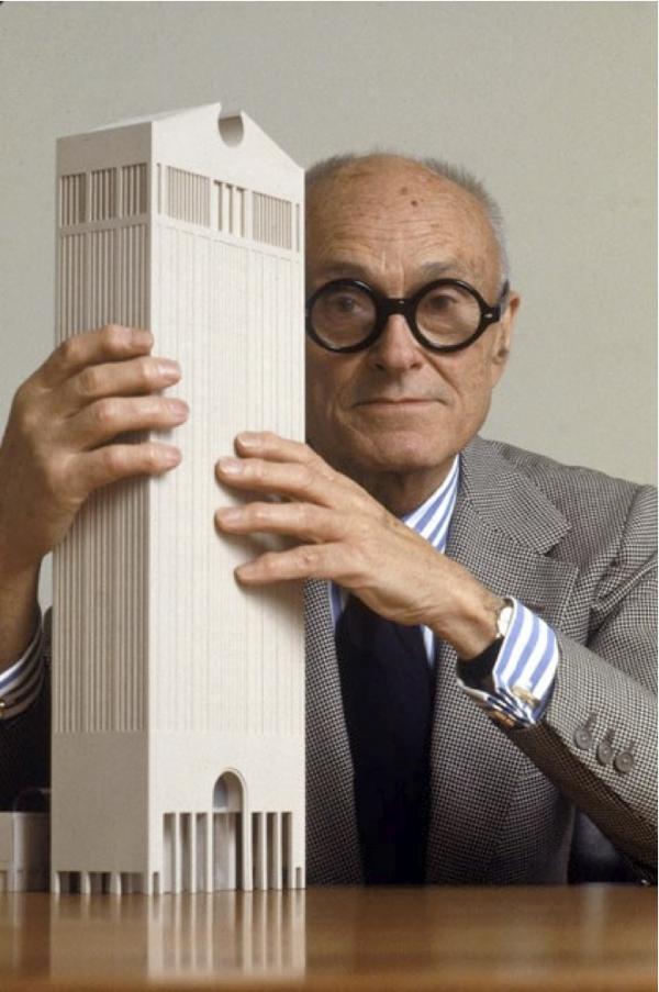 So when he appeared on the cover of Time magazine, holding a model for a skyscraper decorated with a split pediment (often referred to as its ‘Chippendale top’), people were surprised, to say the least. Johnson’s embrace of historicism was one of the clearest signs that a new attitude had come into architectural practice. The octagenarian architect was soon featured on the cover of Domus, the bible of postmodern design.