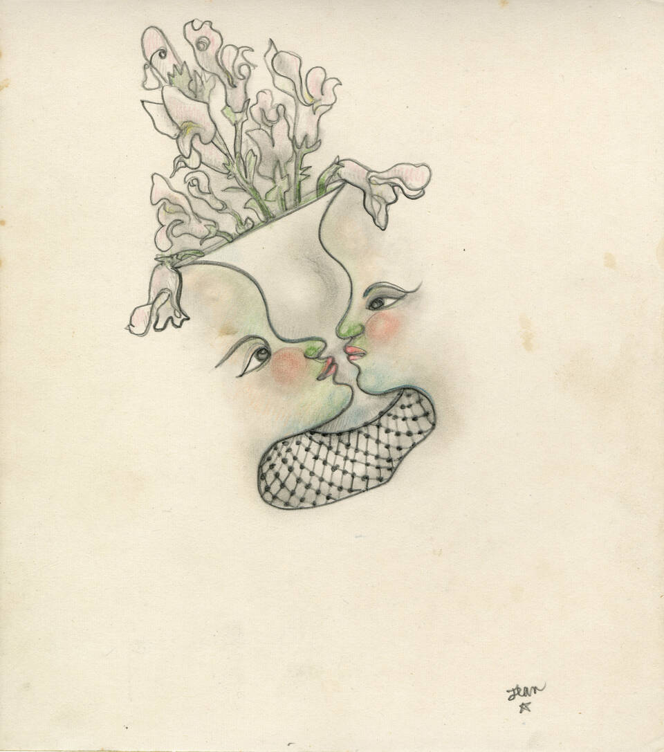 Drawing for Schiparelli by Jean Cocteau. Pencil and coloured pencil on paper, 1937