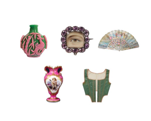 Made in East London, the necklace is inspired by marvels of the V&A collection, from a colourful Chinese snuff bottle to an exquisite paper fan, each reinterpreted as a playful charm strung on a gold-plated silver chain. The objects were chosen to conjure an air of intimacy, playing with ideas of beauty, nostalgia and desire.